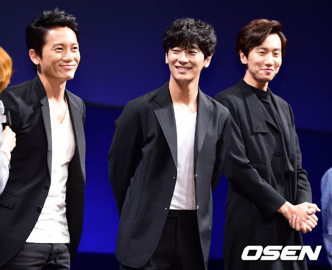 배우 지성, 주지훈, 이광수가 12일 오전 서울 신사동 CGV압구정에서 열린 영화 '좋은 친구들' 제작보고회에 참석해 인사말을 준비하고 있다.