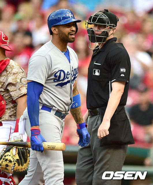 2회초 맷 켐프가 스트라이크 판정에 강하게 어필하고 있다. 켐프는 퇴장을 당했다./ youngrae@osen.co.kr