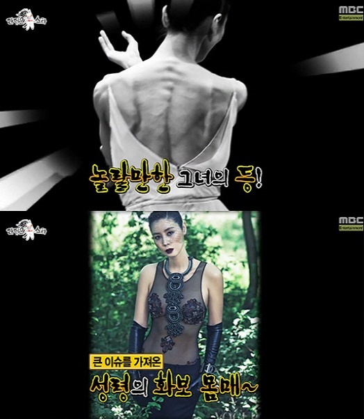 이날 방송에서는 20대 못지않은 세 사람의 몸매가 화두로 떠올랐다. 특히 갈비뼈가 그대로 드러날 정도로 깡마른 강수진의 등 사진을 본 MC들과 게스트들은 감탄사를 연발했다.