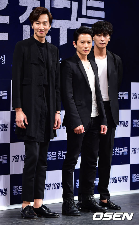배우 지성, 주지훈, 이광수가 12일 오전 서울 신사동 CGV압구정에서 열린 영화 '좋은 친구들' 제작보고회에 참석해 포토타임을 갖고 있다.