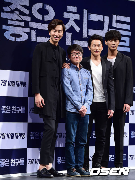 배우 지성, 주지훈, 이광수, 이도윤 감독이 12일 오전 서울 신사동 CGV압구정에서 열린 영화 '좋은 친구들' 제작보고회에 참석해 포토타임을 갖고 있다.