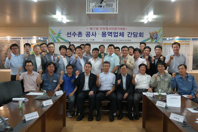 2014 인천아시아경기대회 조직위원회(위원장 김영수)는 12일 인천도시공사 구월사업처 회의장에서 도시공사 관계자 및 선수촌 공사 용역업체 대표 21명을 대상으로 간담회를 실시했다.