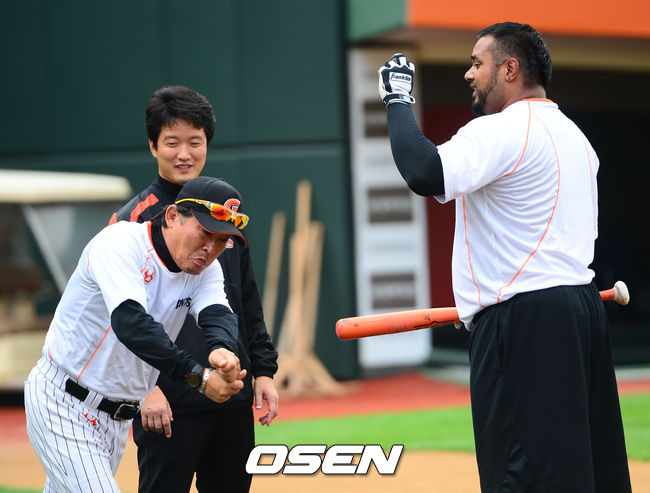 익살 타격 포즈 박흥식 코치,'히메네스! 이렇게 치니까 방망이이 끝에만 걸리잖아'