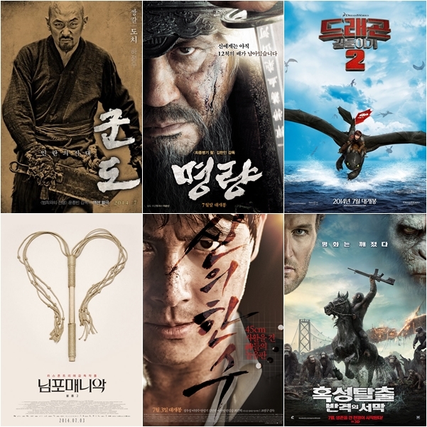 7월 대격전에는 물 건너온 SF, 판타지 영화들도 합류한다. 7월 17일 개봉하는 ‘혹성탈출: 반격의 서막’, 7월 24일 개봉하는 ‘드래곤 길들이기2’, 7월 31일 개봉하는 ‘가디언즈 오브 갤럭시’가 대표 주자다. 그 중에도 '혹성탈출: 반격의 서막', '드래곤 길들이기2'는 이미 전편들이 국내에서 흥행에 성공을 거둔 바 있기에 기다리는 관객들이 적지 않다.
