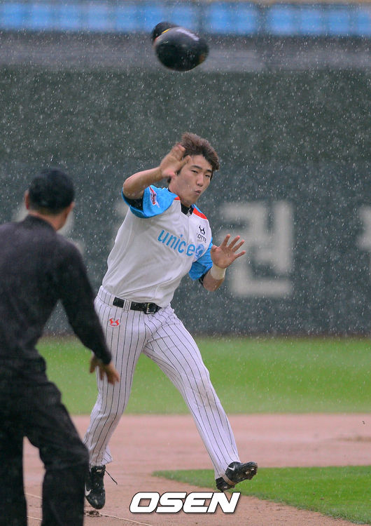 롯데 정훈이 우천 세레모니를 펼치고 있다. / soul1014@osen.co.kr