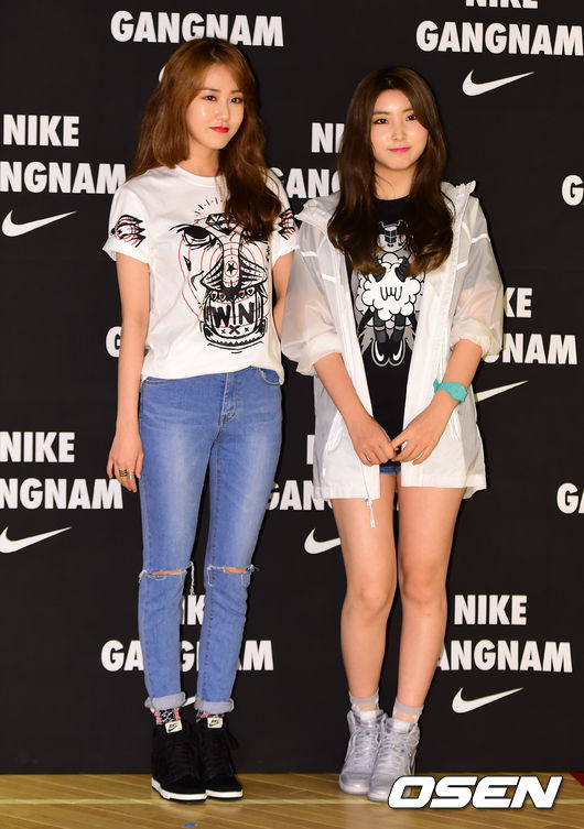 12일 오후 서울 역삼동에서 열린 나이키 강남 플래그십 스토어 VIP 초청 프리 오픈행사에 가수 포미닛 허가윤, 권소현이 참석해 포즈를 취하고 있다.