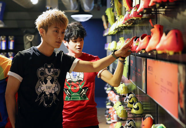 [OSEN=사진팀] 12일 오후 서울 역삼동에서 열린 나이키 강남 플래그십 스토어 VIP 초청 프리 오픈행사에 가수 비스트 윤두준, 양요섭이 참석해 매장을 둘러보고 있다.