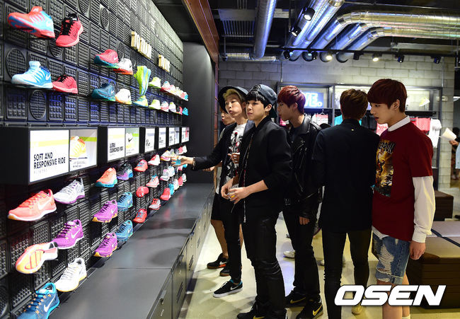12일 오후 서울 역삼동에서 열린 나이키 강남 플래그십 스토어 VIP 초청 프리 오픈행사에 그룹 방탄소년단이 참석해 매장을 둘러보고 있다.