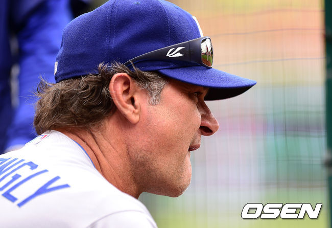 13일 새벽(한국시간) 신시내티에서 열린 신시내티 레즈와 LA 다저스의 경기, 1회말 LA 다저스 돈 매팅리 감독이 경기를 관전하고 있다.