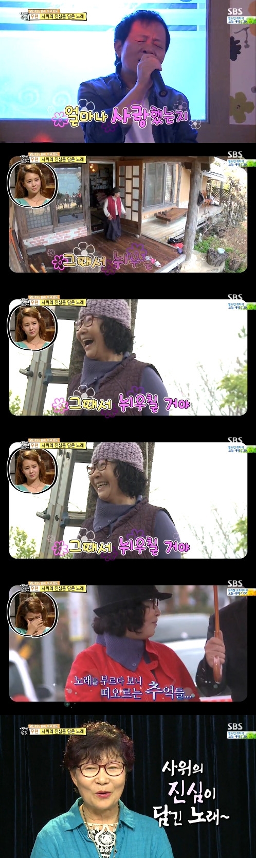 그러나 이를 본 곽의진 선생은 “하지마. 진짜 안 어울린다. 징그럽다”고 응수해 현장을 웃음바다로 만들었다. 이후 노래방을 간 우현은 장모님을 위한 노래를 열창해 곽의진 선생을 감동케 했다. 하지만 이 노래가 마지막 노래가 될 줄 누가 알았으랴. 늘 유쾌하고 사랑스러웠던 그녀의 모습이 파노라마처럼 펼쳐지자 스튜디오는 금세 눈물바다가 됐다.