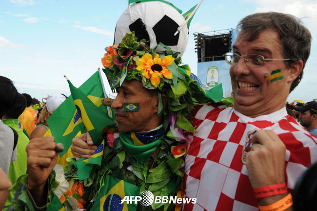 브라질 축구팬과 크로아이타 축구팬이 함께 응원을 펼치고 있다. /photo@osen.co.kr