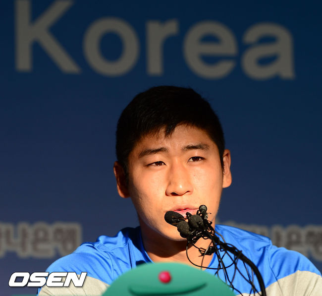 [OSEN=브라질 이구아수, 민경훈기자] 12일 오후(현지시간) 홍명보감독이 이끄는 축구대표팀이 이구아수(이과수)의 페드로 바소경기장에서 훈련 전 이근호가 인터뷰를 하고 있다.