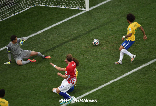 개막전 브라질과 크로아티아의 경기, 전반 브라질 마르셀루가 자책골을 넣고 있다. /photo@osen.co.kr