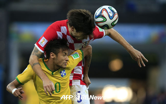 전반 네이마르가 크로아티아 촐루카와 공중볼을 다투고 있다. /photo@osen.co.kr