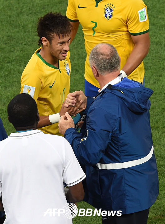 개막전 브라질과 크로아티아의 경기 전반 동점골을 넣은 네이마르가 스콜라리 감독과 하이파이브를 하고 있다. /photo@osen.co.kr