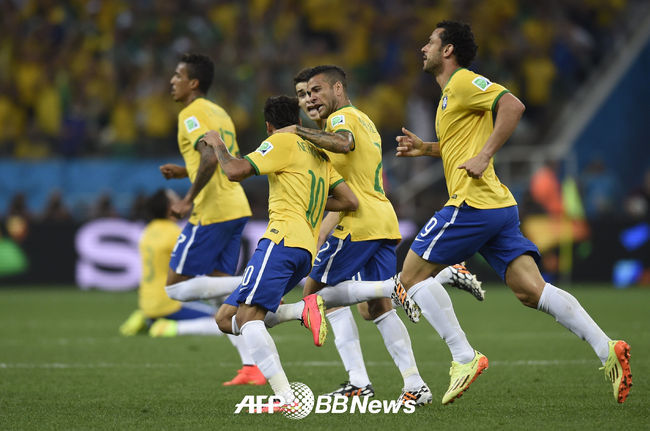 [브라질-크로아티아]네이마르 동점골에 환호하는 브라질