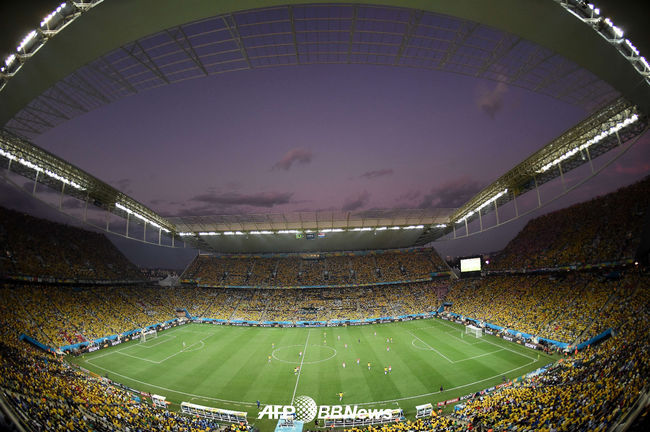 개막전 브라질과 크로아티아의 경기가 진행되고 있다