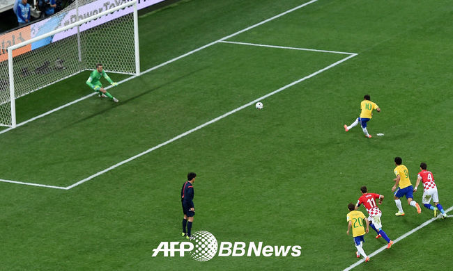 결국 크로아티아는 전반 29분 동점골을 허용했다. 브라질 네이마르가 강력한 왼발 슈팅으로 1-1, 경기를 원점으로 돌렸다. 또 크로아티아는 후반 27분 역전골을 허용했다. 하지만 주심의 페널티킥 판정이 애매했다. 프레드에게 PK를 허용했지만 이해하기 힘든 판정이었다.