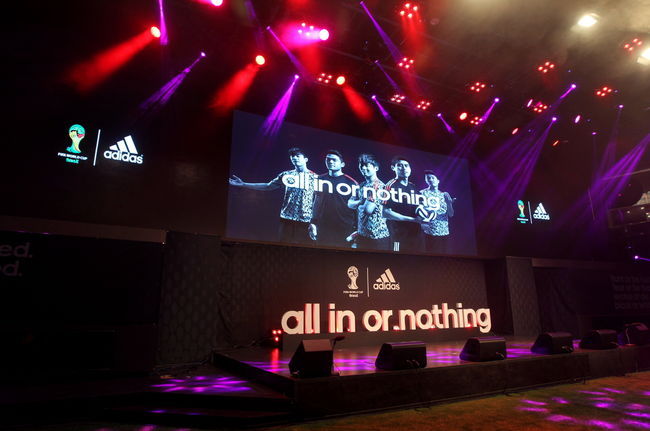 브라질과의 시차로 경기가 이른 새벽에 시작되는 점을 고려해 ‘아디다스 올인 아레나’ 현장에서는 다양한 행사가 진행될 예정이다. 오는 14일 스페인과 네덜란드의 빅매치 응원전에는 걸그룹 걸스데이가 현장을 방문한다. 23일 알제리 전에는 2NE1이, 27일 벨기에 전에는 남성 아이돌 그룹 위너가 한국 대표팀의 선전을 기원하는 무대를 펼친다.