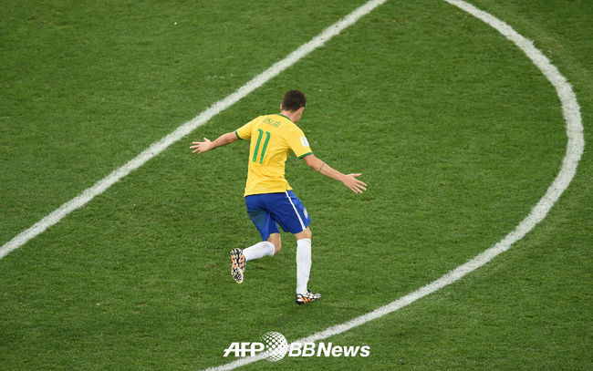 개막전 브라질과 크로아티아의 경기 후반 오스카가 추가골을 넣고 기뻐하고 있다/photo@osen.co.kr