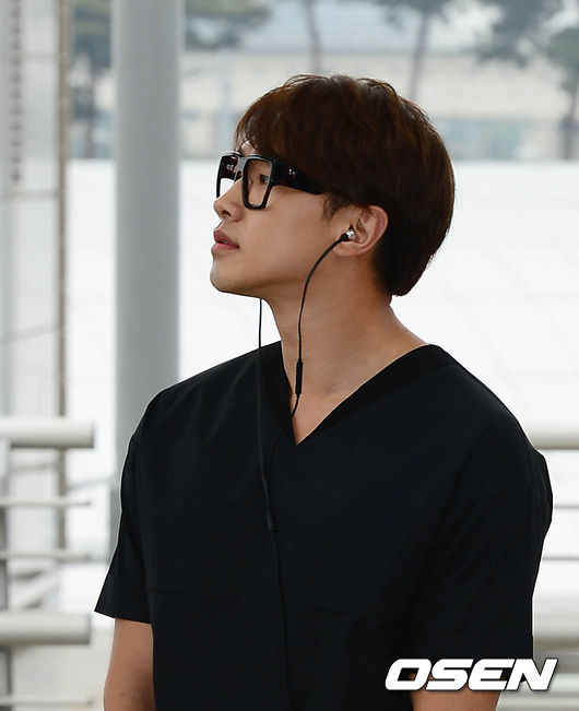 13일 오전 가수 비(본명 정지훈)가 해외일정을 위해 인천국제공항을 찾아 신호를 기다리며 음악을 듣고 있다.