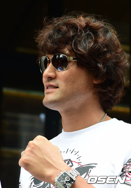 박찬호가 파이팅 포즈를 하며 포토타임을 하고 있다.