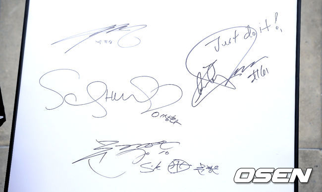 사진은 문경은, 박지성, 이상화, 박찬호의 사인