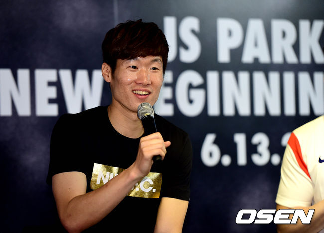 박지성이 '뉴 비기닝(NEW BEGINNING)' 팬미팅에 참석해 사회자의 질문에 답하고 있다.