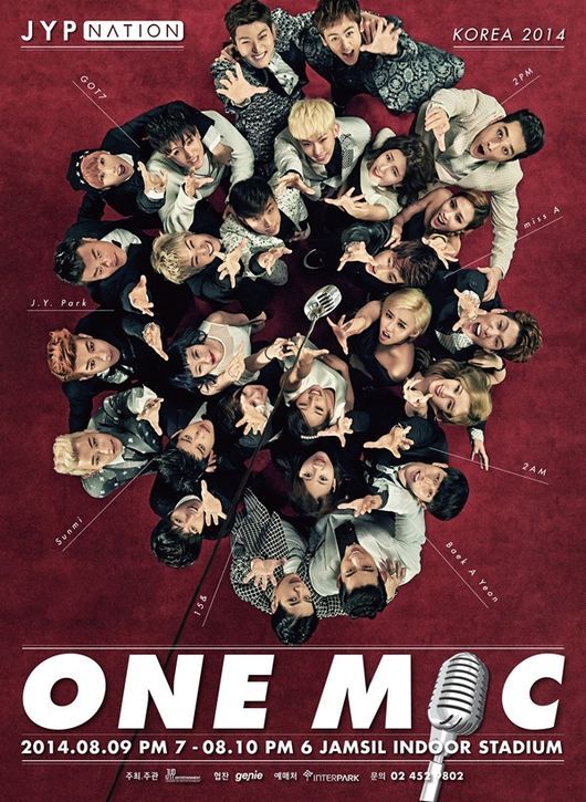 JYP엔터테인먼트가 소속 아티스트들이 출연하는 '2014 제이와이피 네이션-원 마이크(2014 JYP NATION-ONE MIC)' 콘서트의 포스터를 공개했다.