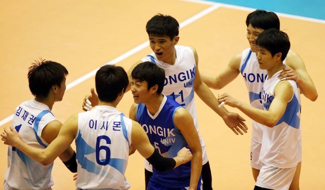 22-22로 팽팽하게 맞선 상황에서 집중력에서 앞선 쪽은 홍익대였다. 중부대는 24-23으로 뒤진 절체절명의 상황에서 점수를 내주며 2세트마저 홍익대에 내줬다. 3세트 역시 24-23으로 한 점 앞선 상황에서 김재권이 경기를 마무리 하는 득점을 성공시키며 승리에 쐐기를 박았다.