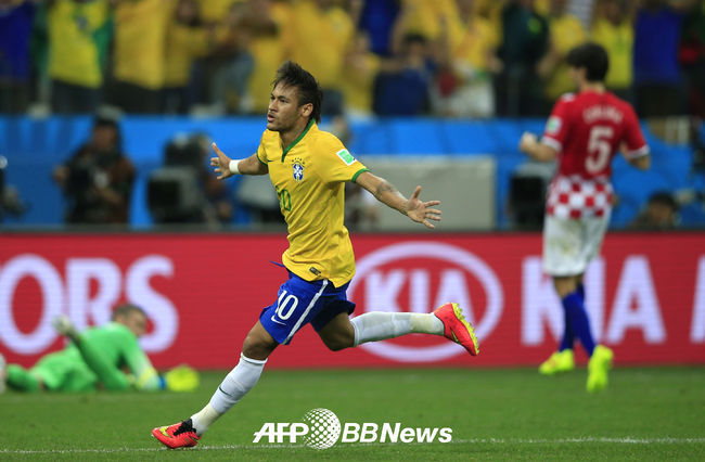네이마르는 13일(이하 한국시간) 브라질 상파울루 아레나 코린티아스에서 열린 ‘2014 브라질 월드컵’ 조별예선 A조 크로아티아와의 첫 경기에서 2골을 넣으며 팀의 3-1 역전승을 이끌었다. 영웅적인 활약이었다. 마르셀루의 자책골로 불안하게 출발한 브라질은 전반 29분 네이마르가 크로아티아의 중원을 헤집은 끝에 정확한 왼발 슈팅으로 동점골을 만들었다.