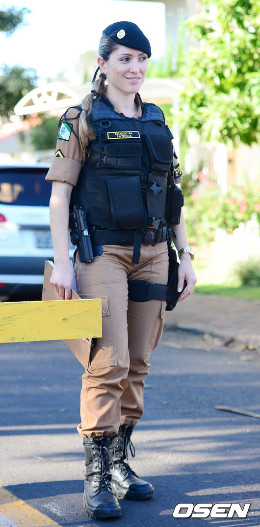 [OSEN=브라질 이구아수, 민경훈기자] 12일 오후(현지시간) 홍명보감독이 이끄는 축구대표팀이 이구아수(이과수)의 페드로 바소경기장에서 훈련을 할 예정인 가운데 홍명보호가 훈련을 하는 페드로 바소 경기장에서 앞에 브라질 여자 경찰들이 권총을 차고 보초를 서고 있다.