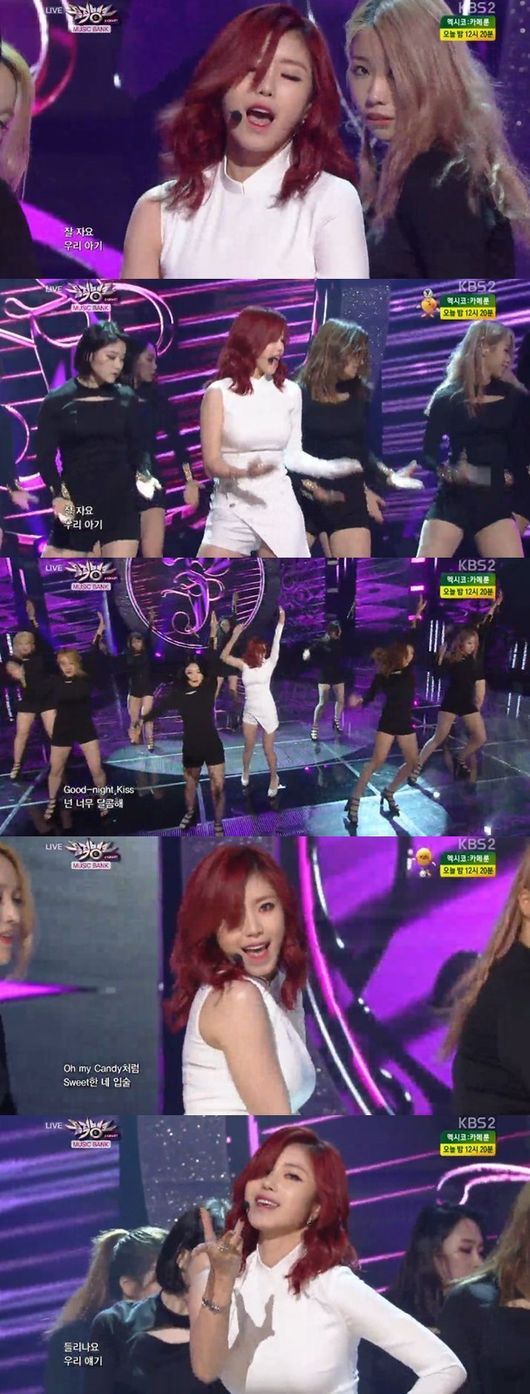 전효성은 13일 오후 브라질 월드컵 특집으로 방송된 KBS 2TV '뮤직뱅크'에 출연해 '굿나잇키스'로 돋보이는 무대를 완성했다.