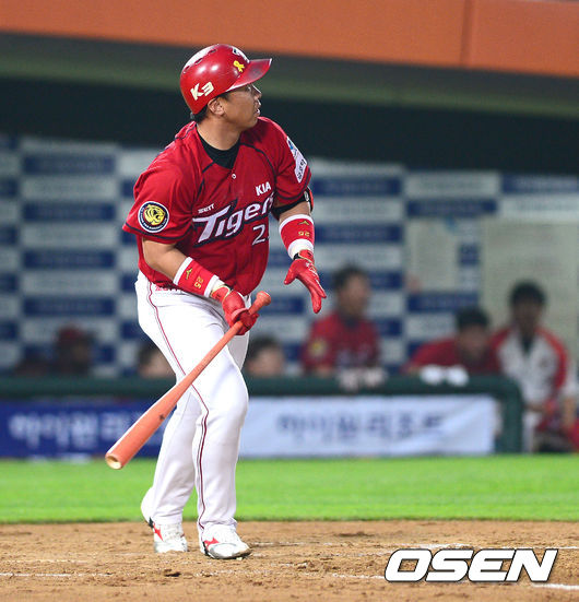 13일 부산 사직구장에서 열리는 2014 한국야쿠르트 세븐 프로야구 롯데 자이언츠와 KIA 타이거즈의 경기, 3회초 2사 1,2루 KIA 이범호가 3점 홈런을 날리고 있다.