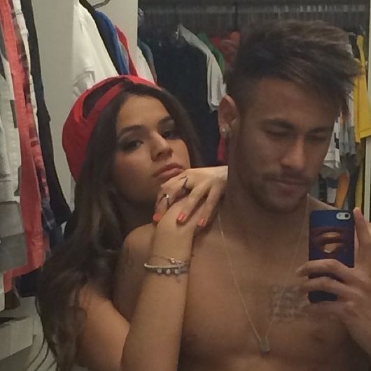 사진 속에서 네이마르는 여자친구 브루나 마르케지니와 함께 섹시한 자태를 뽐내고 있다. 특히 네이마르는 상의를 탈의한 채 휴대폰을 바라보고 있고 여자친구를 그의 한쪽 어깨에 기대 거울을 응시하고 있다.
