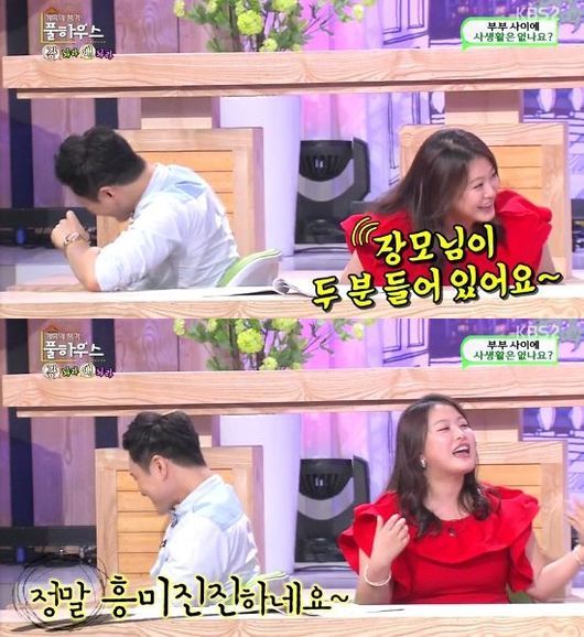 심진화는 13일 오후 방송된 KBS 2TV 예능프로그램 '가족의 품격-풀하우스'에서 김원효의 휴대폰에 음성인식으로 '장모'라고 외치면 두 개의 전화번호가 뜬다고 털어놓으며 "장모님이 두 분이 있더라"고 말해 웃음을 자아냈다.