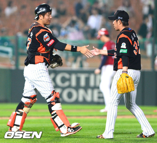 김승회-강민호,'승리 지켜냈어'