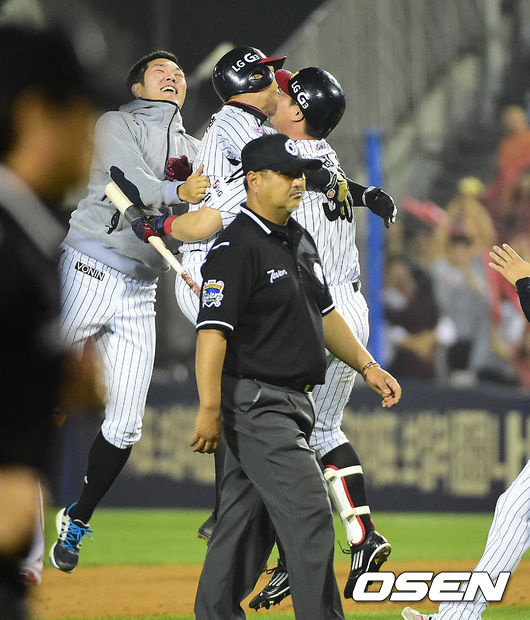 연장 10회말 LG 공격 2사 만루 상황 오지환이 끝내기 우전안타를 날리고 이진영과 포옹하며 기뻐하고 있다./dreamer@osen.co.kr