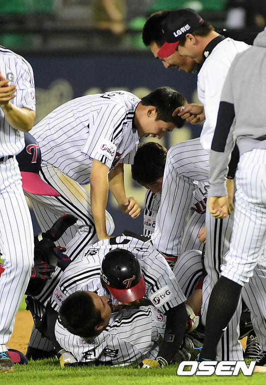 연장 10회말 LG 공격 2사 만루 상황 오지환이 끝내기 우전안타를 날리고 이진영과 포옹하며 기뻐하고 있다./dreamer@osen.co.kr