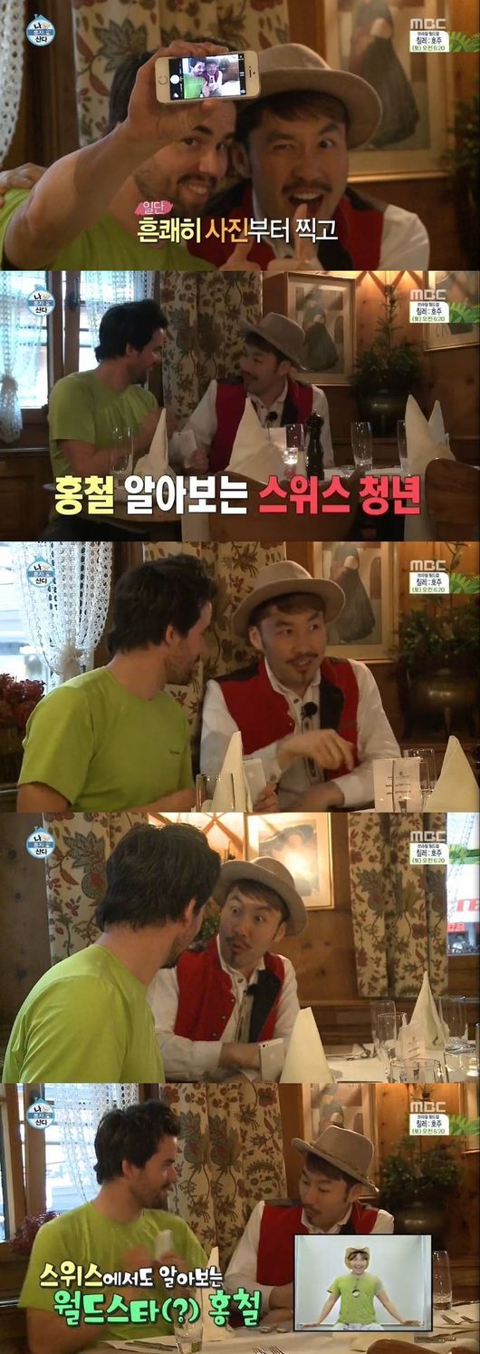 방송인 노홍철이 싸이 뮤직비디오에 나온 자신을 알아본 스위스 팬과 인증샷을 찍었다.