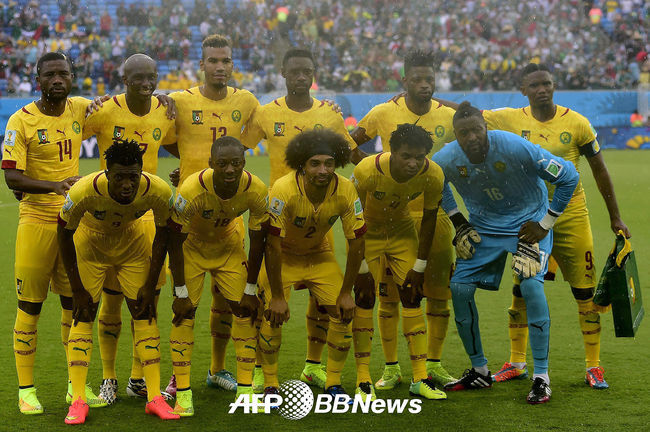 경기에 앞서 카메룬 선수들이 기념촬영을 하고 있다.