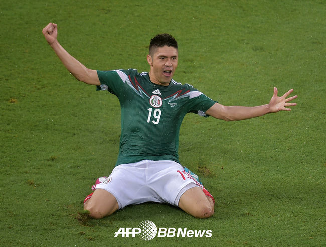 [멕시코-카메룬]오리베 페랄타,'화끈한 선제골 세레모니'