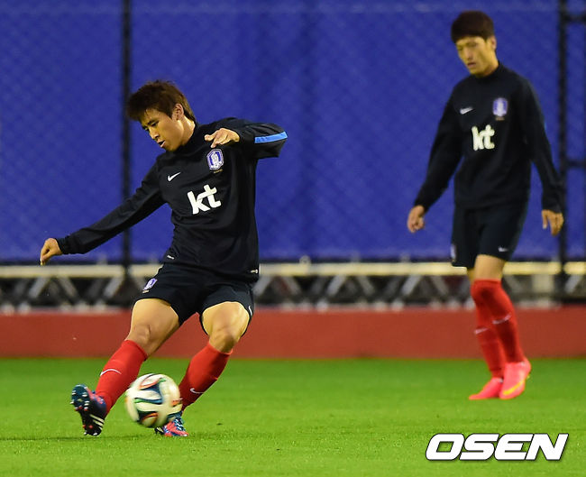 [OSEN=브라질 이구아수, 민경훈기자] 13일 오후(현지시간) 홍명보감독이 이끄는 축구대표팀이 이구아수(이과수)의 페드로 바소경기장에서 훈련을 가졌다. 구자철이 패싱 훈련을 하고 있다.