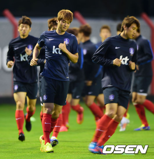[OSEN=브라질 이구아수, 민경훈기자] 13일 오후(현지시간) 홍명보감독이 이끄는 축구대표팀이 이구아수(이과수)의 페드로 바소경기장에서 훈련을 가졌다. 기성용이 다함께 러닝을 하고 있다.