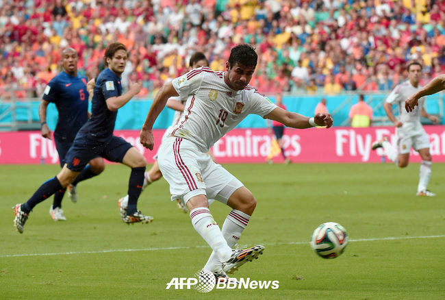 전반 스페인 디에구 코스타가 슛을 시도하고 있다.