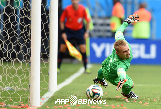 전반 네덜란드 골키퍼 야스퍼르 실레선이 스페인 사비 알론소에게 페널티킥 실점을 허용하고 있다.