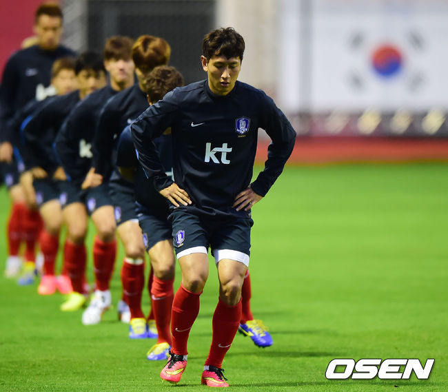 [OSEN=브라질 이구아수, 민경훈기자] 13일 오후(현지시간) 홍명보감독이 이끄는 축구대표팀이 이구아수(이과수)의 페드로 바소경기장에서 훈련을 가졌다. 지동원과 선수들이 몸을 풀고 있다.