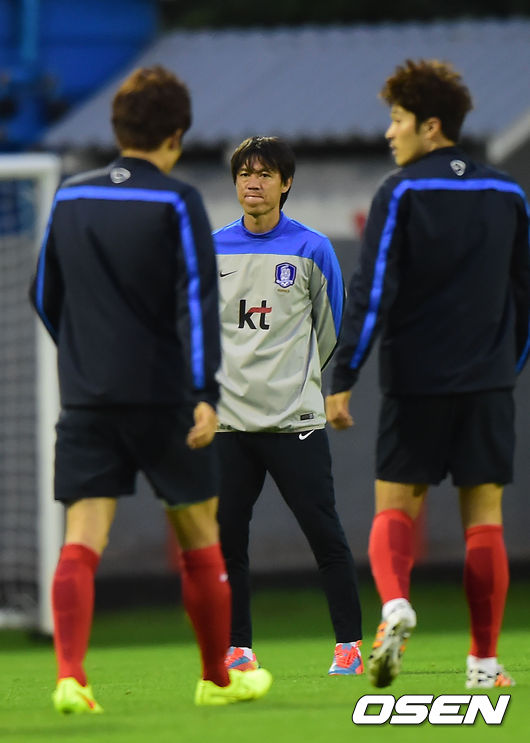 [OSEN=브라질 이구아수, 민경훈기자] 13일 오후(현지시간) 홍명보감독이 이끄는 축구대표팀이 이구아수(이과수)의 페드로 바소경기장에서 훈련을 가졌다. 홍명보 감독이 생각에 잠겨있다.