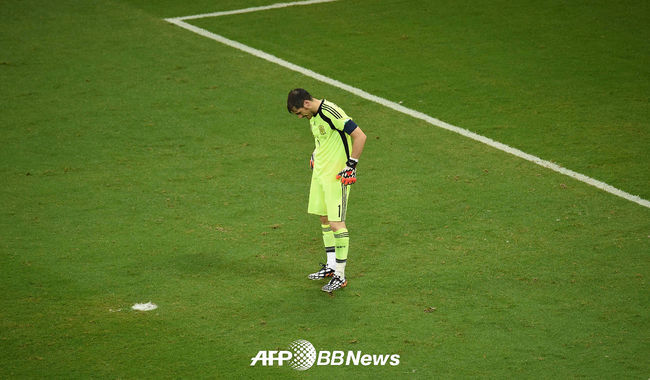 후반 네덜란드 아르연 로벤에게 골을 허용한 스페인 이케르 카시야스가 아쉬운 표정을 짓고 있다./photo@osen.co.kr