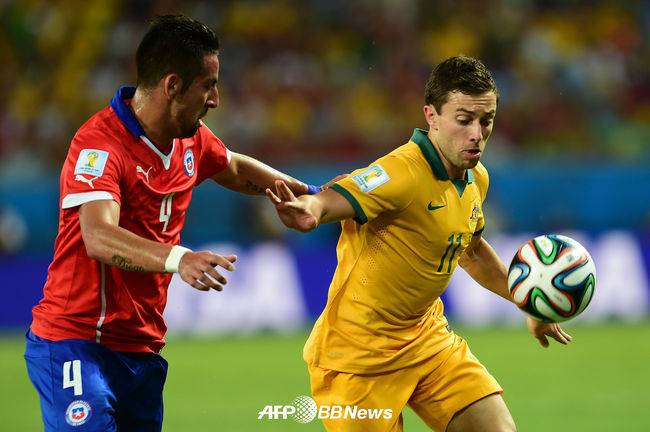 [OSEN=사진팀] 14일(한국시간) 브라질 쿠이아바의 아레나판타날에서 B조 칠레와 호주의 경기가 열렸다.